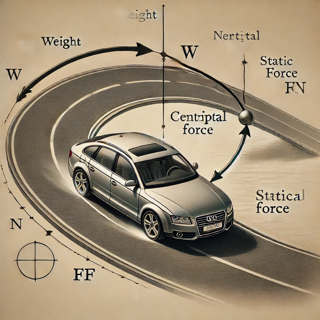 diagram for a car going around a banked curve"