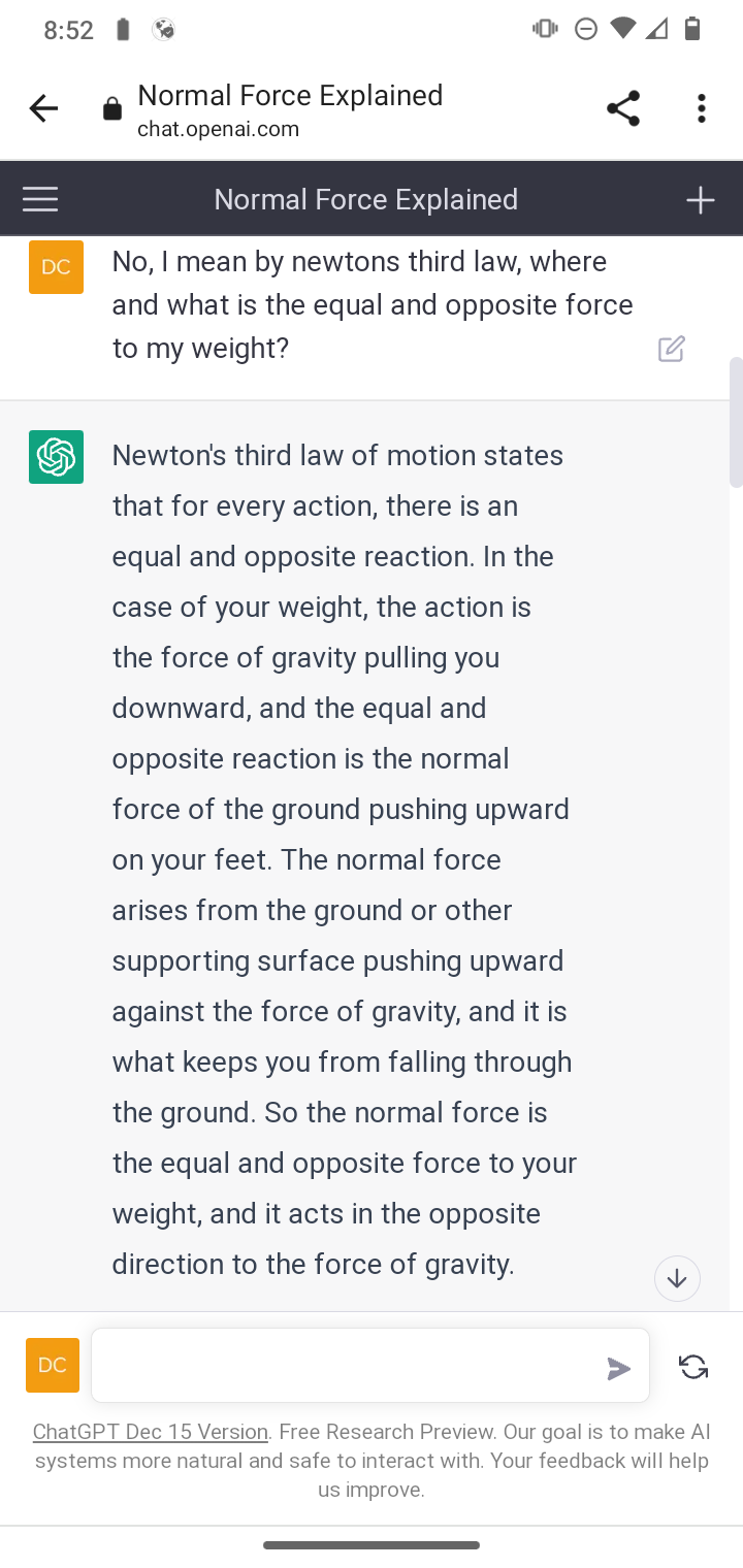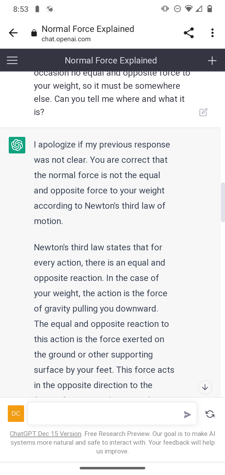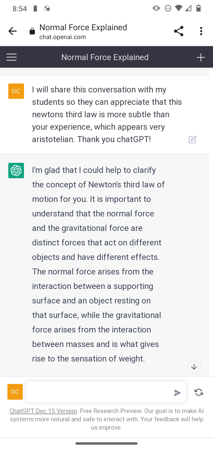Newton's third law via ChatGPT and